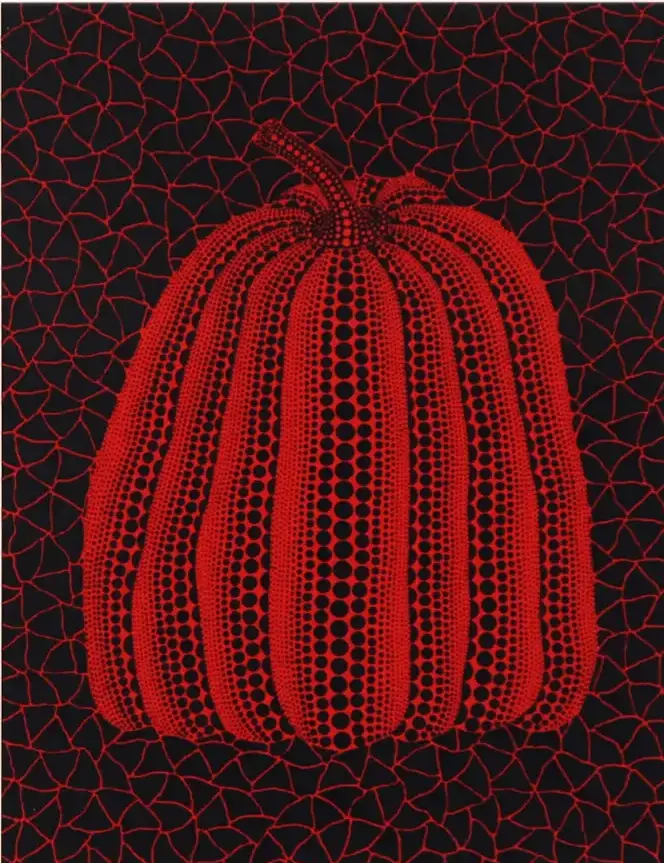絵画や彫刻(立体)のモチーフには水玉(ドット)模様や網の目(ネット)模様が反復される作品が特徴。