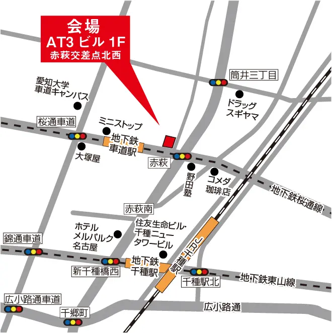 場 所 名古屋市東区筒井3-27-17 AT3ビル1F