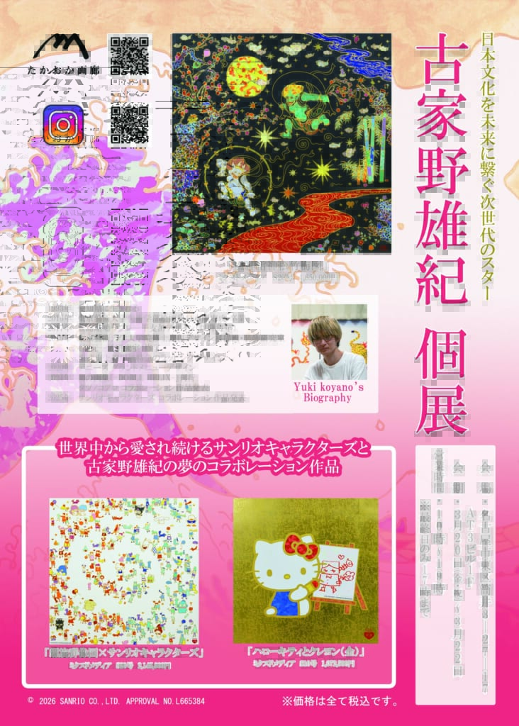 本展では日本の伝統をオマージュした「風神雷神図」や「波と富士と群像図」といった代表作をはじめ、様々な企業とコラボレーションをしてきた中でも最新となるサンリオキャラクターズコラボ作品を多数ご用意いたしております。